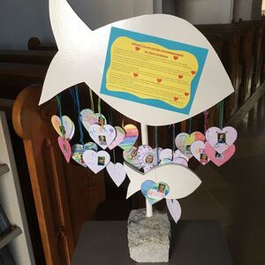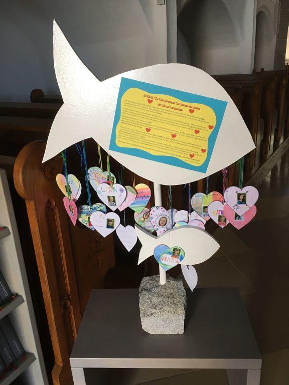 Da unser heuriges Erstkommunionsthema „JESUS, KOMM IN MEIN HERZ!“ lautet, mussten die 23 Kinder als einen ihrer Homeschooling-Aufträge im Fach Religion ein Herz mit ihrem Bild und der Fragestellung „Wer/Was liegt mir am Herzen?“ kreativ gestalten und an den „Erstkommunion-Fisch“ hängen.